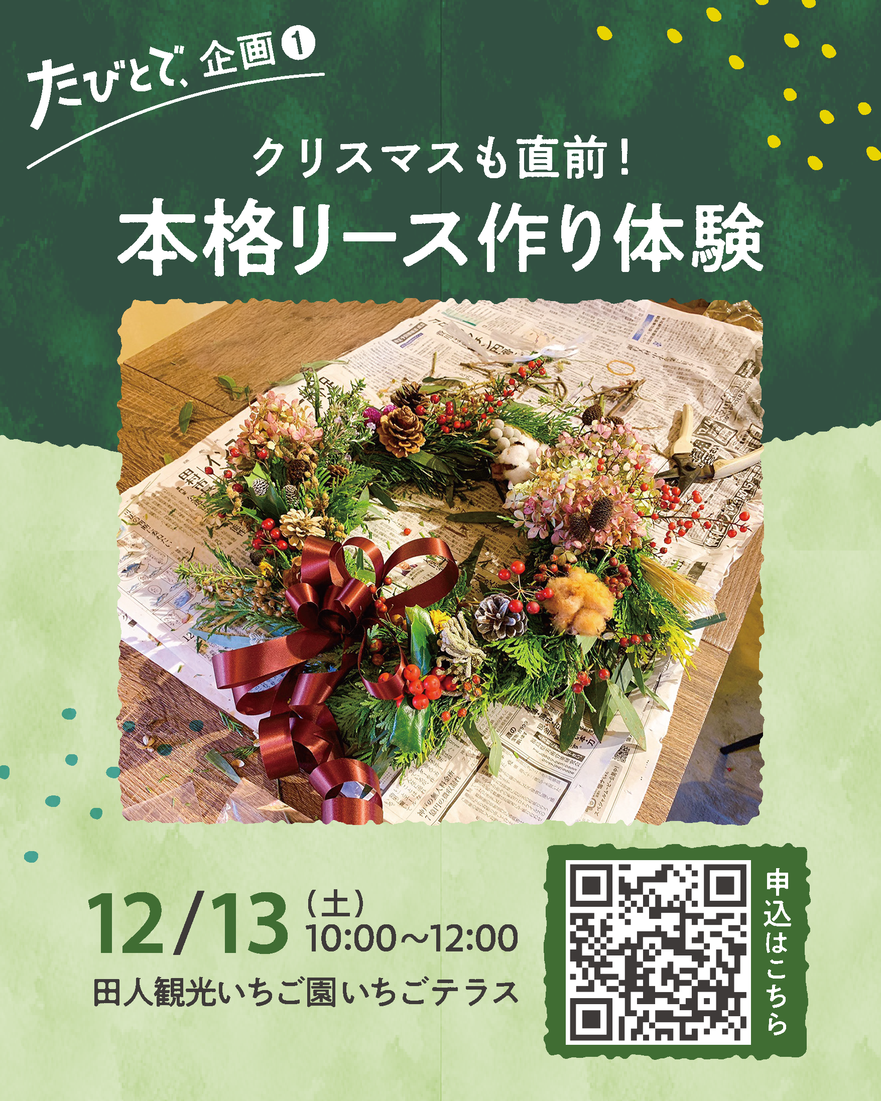 内容:田人の自然素材を使った🎄リース作り体験 ※いちご甘酒付