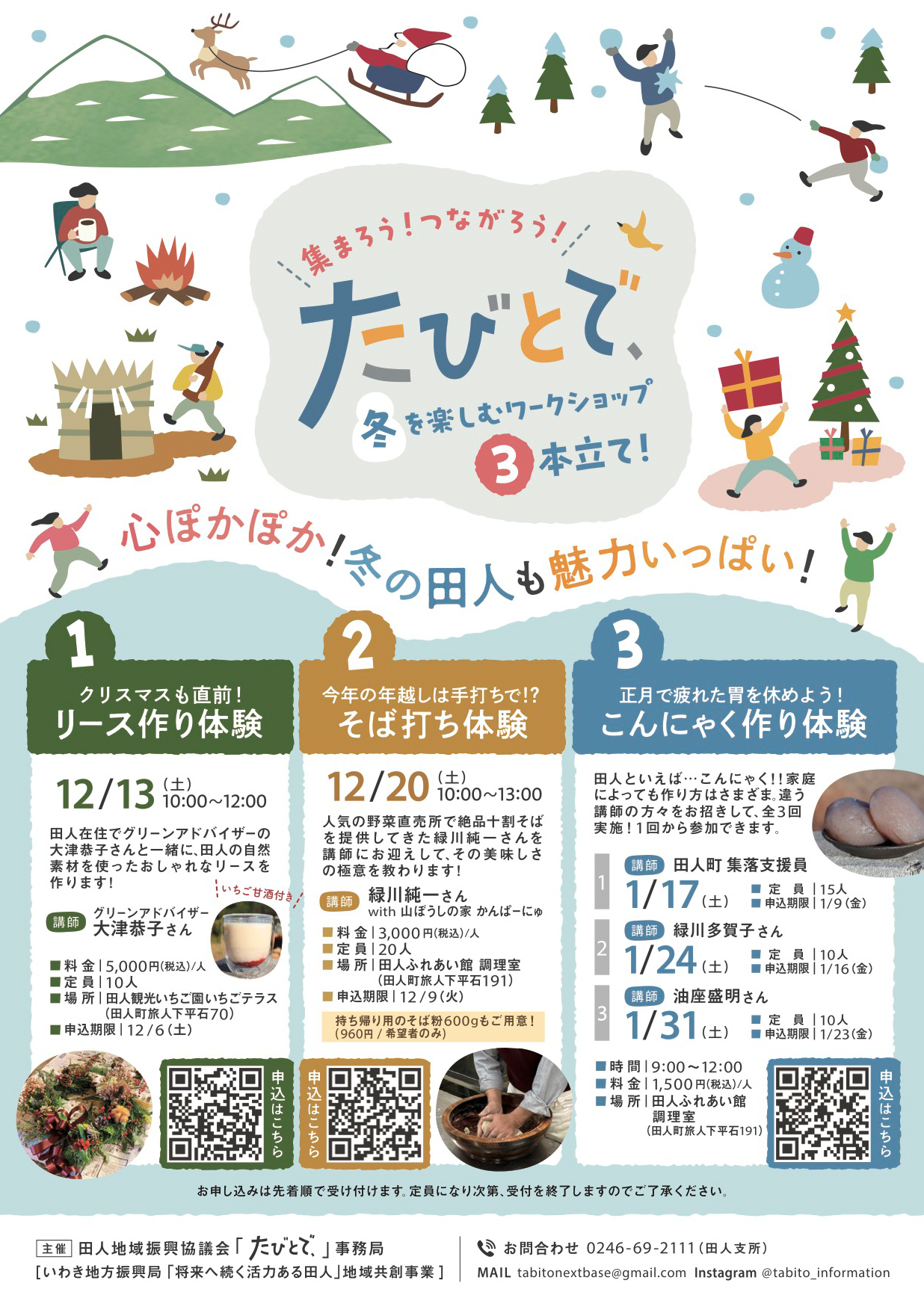 本イベントは、田人地域振興協議会「たびとで、」プロジェクトが主催する、冬の田人を満喫する特別イベントになります✨️